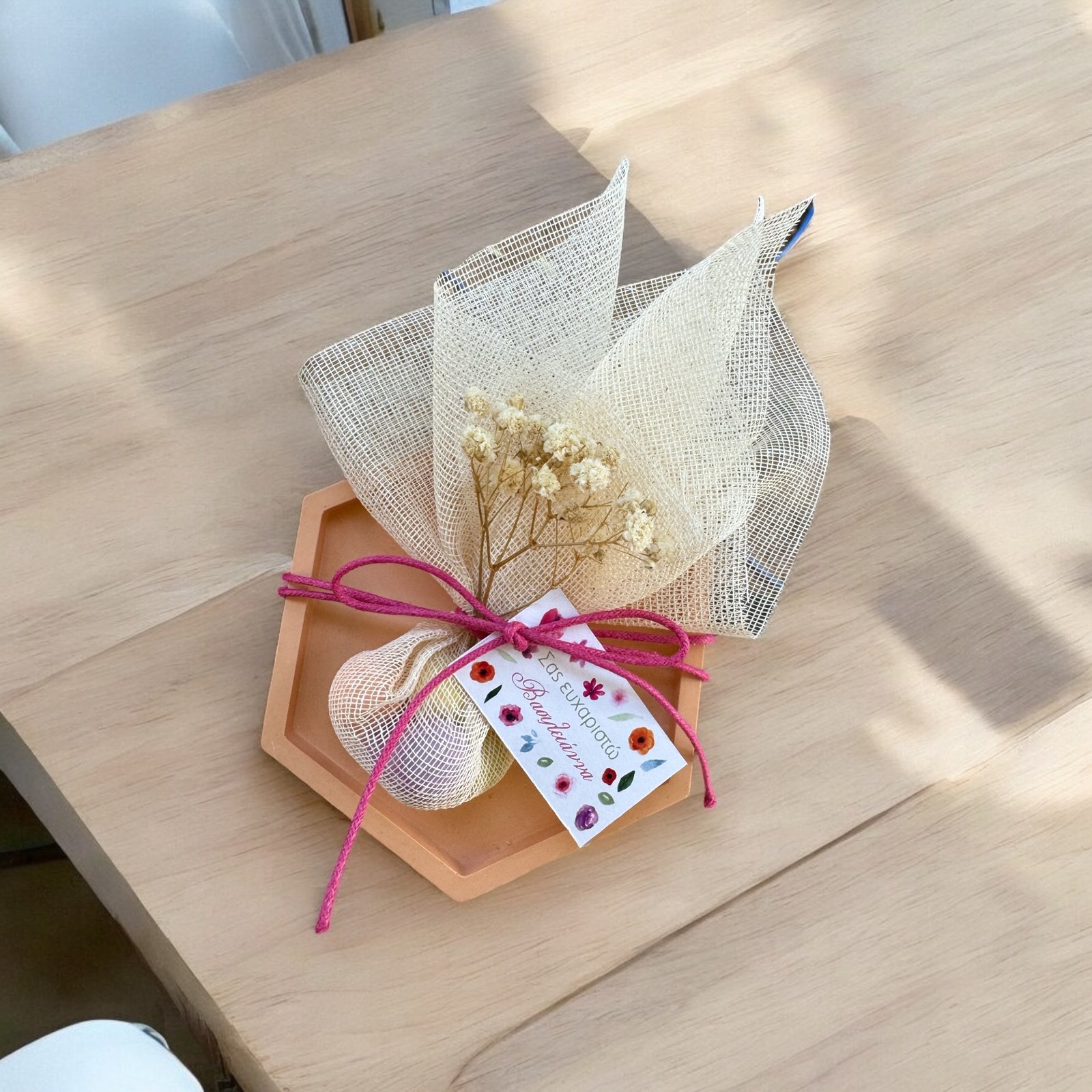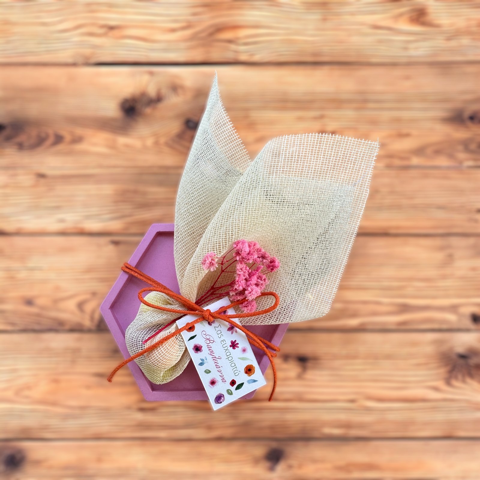 Μια μπομπονιέρα που συνδυάζει στυλ και χρηστικότητα! Το σουβέρ από σκόνη πορσελάνης, με τη minimal αισθητική και την ιδιαίτερη υφή του, αποτελεί ένα διαχρονικό δώρο για τους καλεσμένους σας. Μια κομψή επιλογή που θα τους θυμίζει τη μοναδική σας μέρα σε κάθε χρήση!