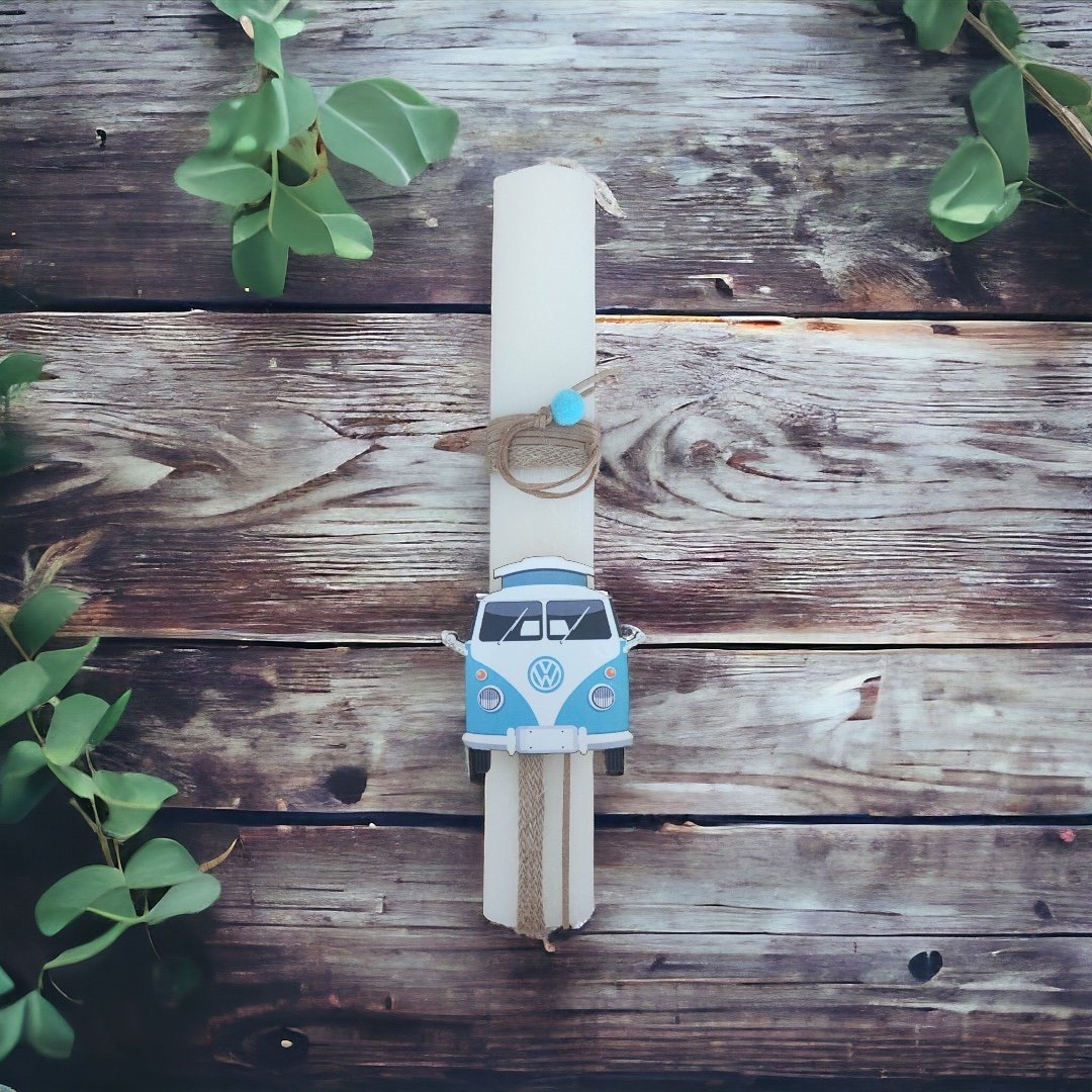 Αρωματική αγορίστικη χειροποίητη πασχαλινή λαμπάδα   30cm σε λευκό οβάλ κερί. Διακοσμημένη με ξύλινο μοτιφ βεραμάν βανάκι .  Όμορφη επιλογή για να ξετρελάνει τα  μικρά σας βαφτιστήρια και να εντυπωσιάσουν την ημέρα της Ανάστασης. Συσκευάζεται με τον καλύτερο δυνατό τρόπο και αποστέλλεται σε κραφτ συσκευασία δώρου.