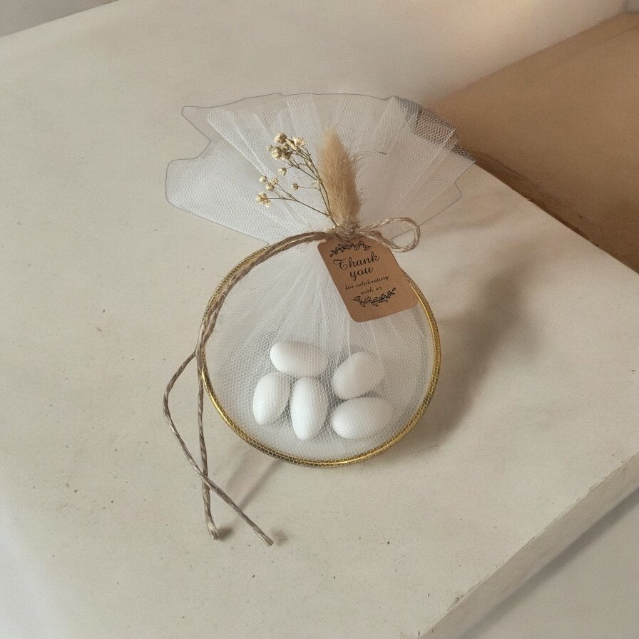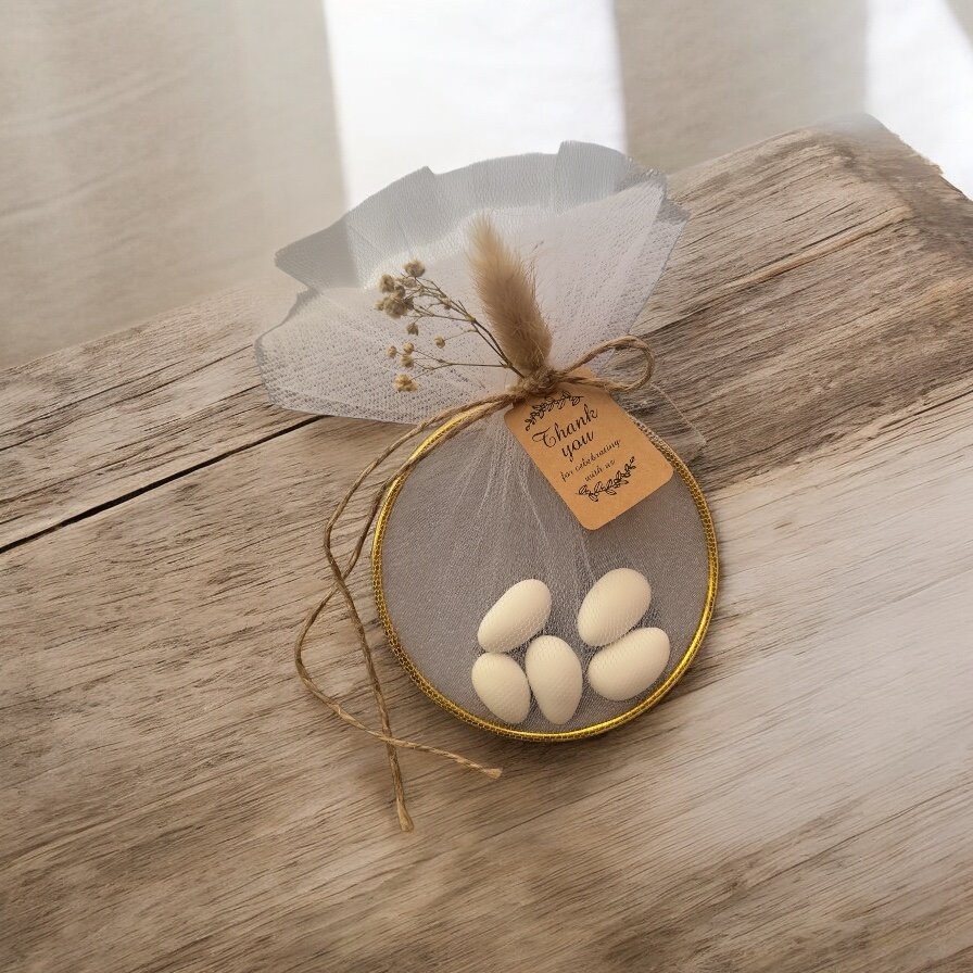 Μια μπομπονιέρα που συμβολίζει την αιώνια ένωση και την αγάπη! Το μεταλλικό στεφανάκι, διακοσμημένο με προσεγμένες λεπτομέρειες, προσφέρει μια διαχρονική και κομψή πινελιά στη μοναδική σας μέρα. Ένα ξεχωριστό δώρο για τους καλεσμένους σας, που θα τους θυμίζει για πάντα τη χαρά της στιγμής!