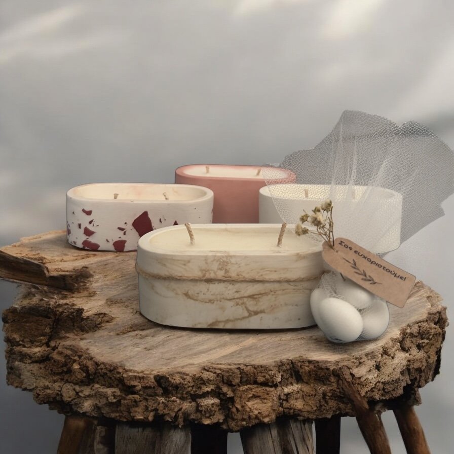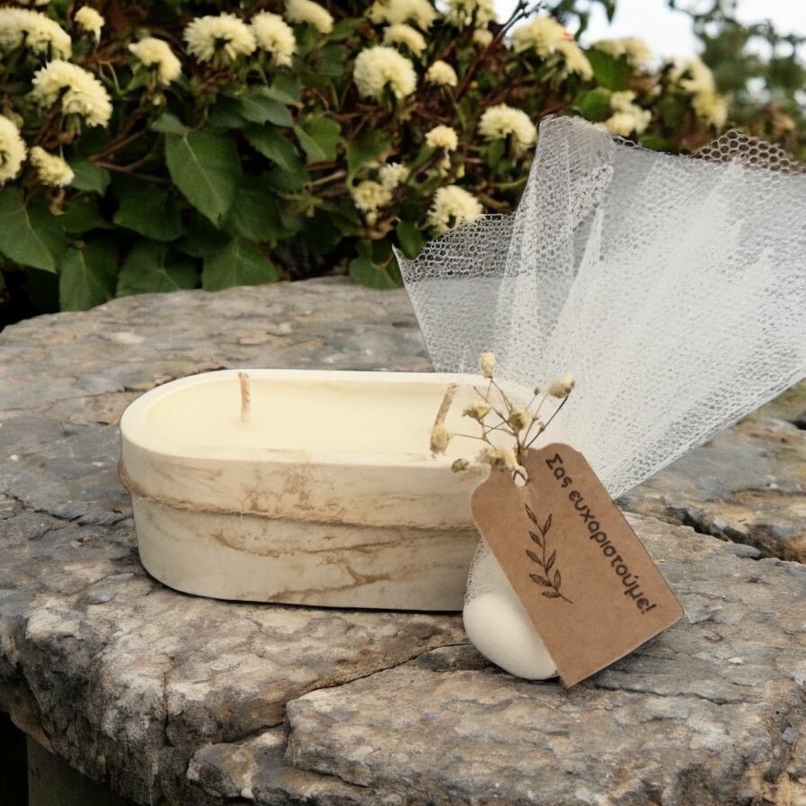 Διάσταση 8χ4cm και 70gr καθαρό βάρος κεριού. Ελάχιστη ποσότητα παραγγελίας 30 τεμάχια. Δυνατότητα να προσθέσουμε ευχαριστήριο καρτελάκι με επιπλέον χρέωση.