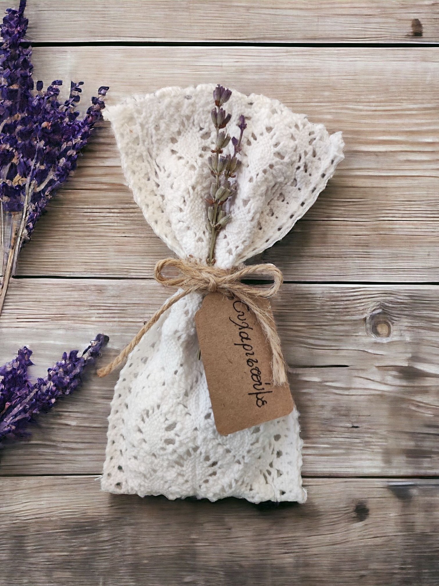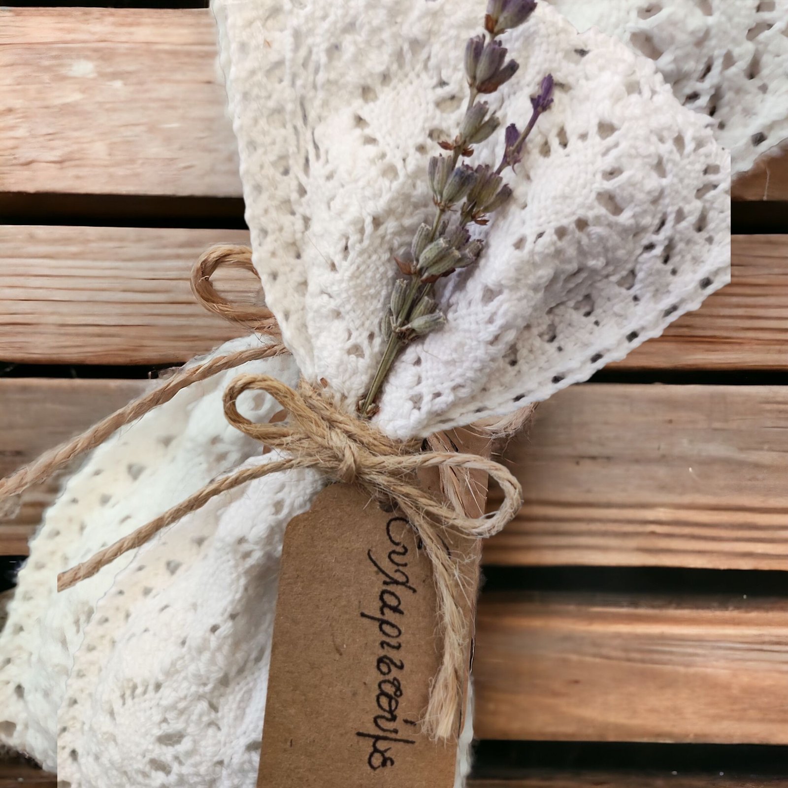 Μπομπονιέρα πουγκί δαντέλα με λεβάντα