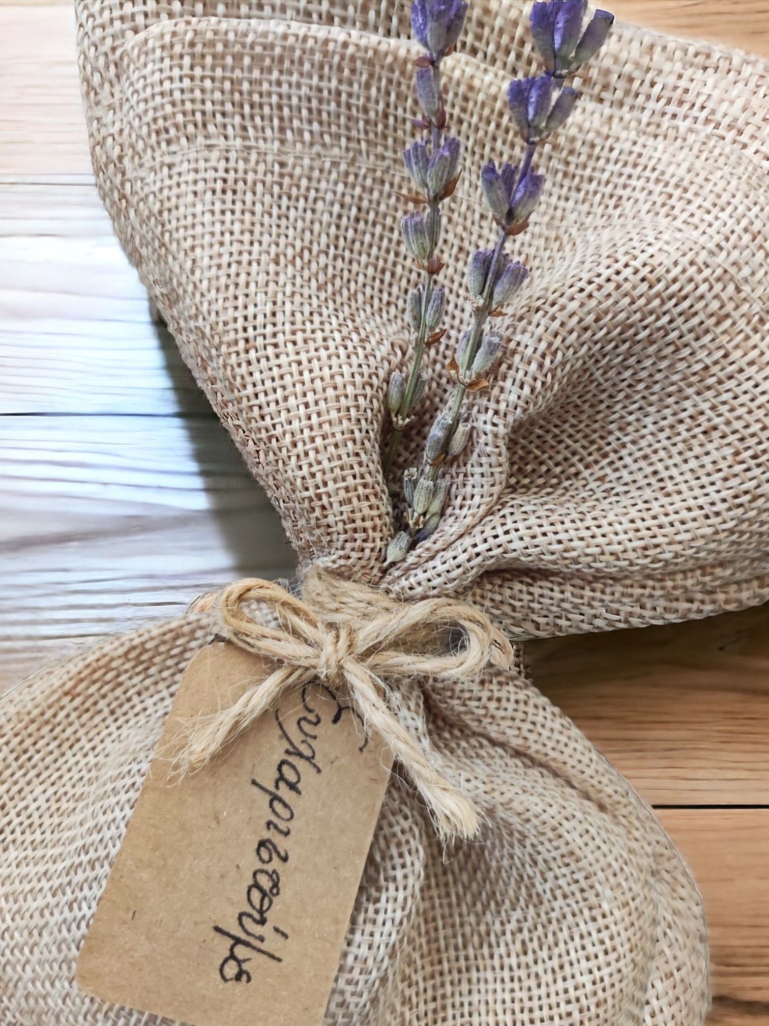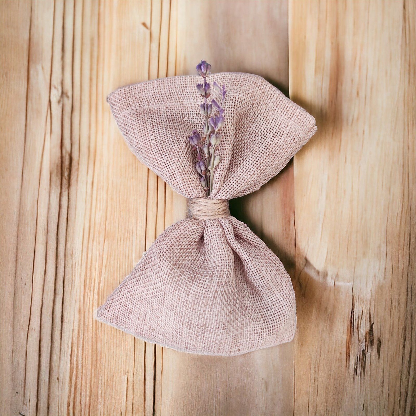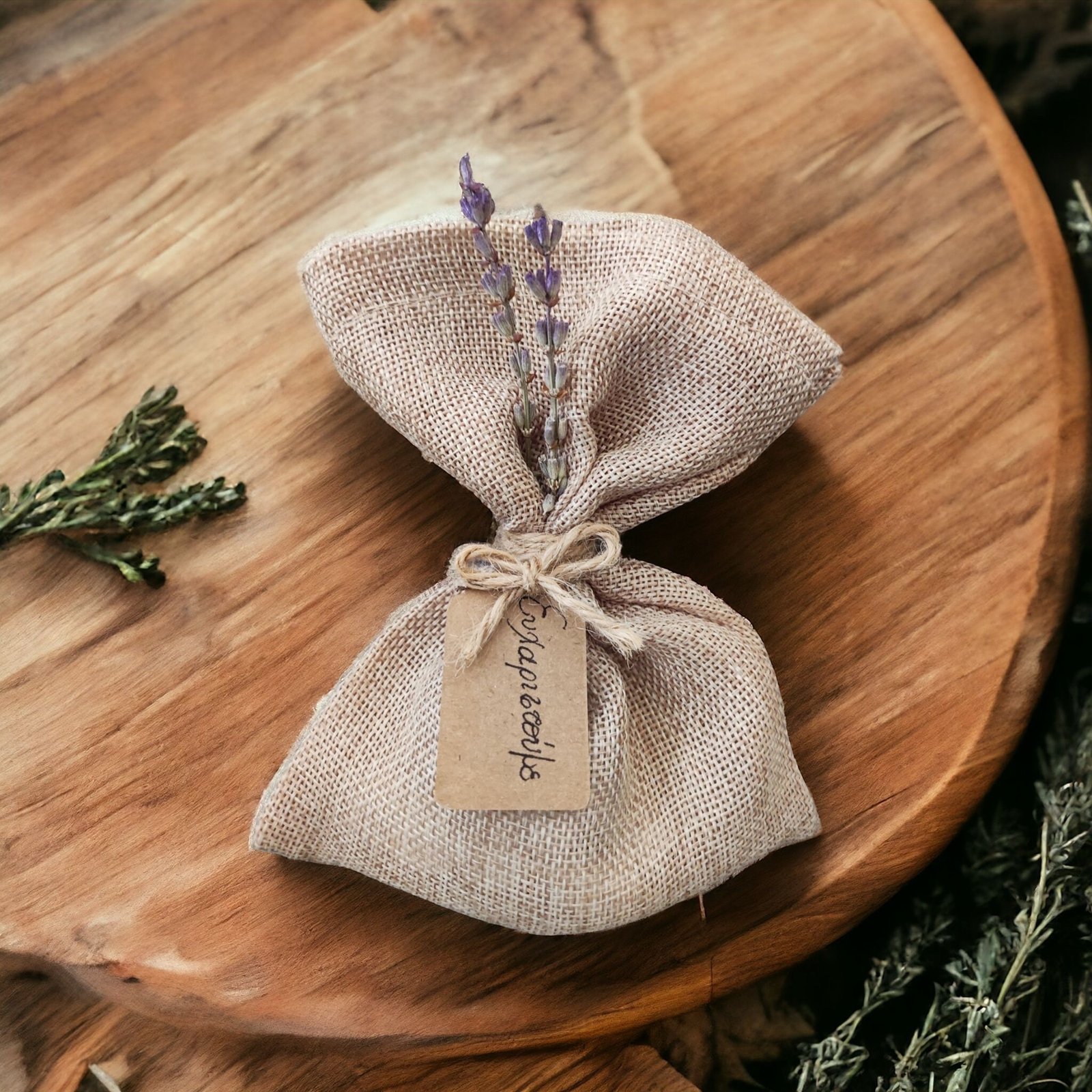 Μπομπονιέρα πουγκί λινάτσα με λεβάντα