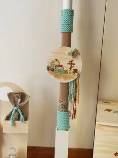 Τη λαμπάδα με στρογγυλή πινακίδα ζωγραφισμένη στο ίδιο θέμα