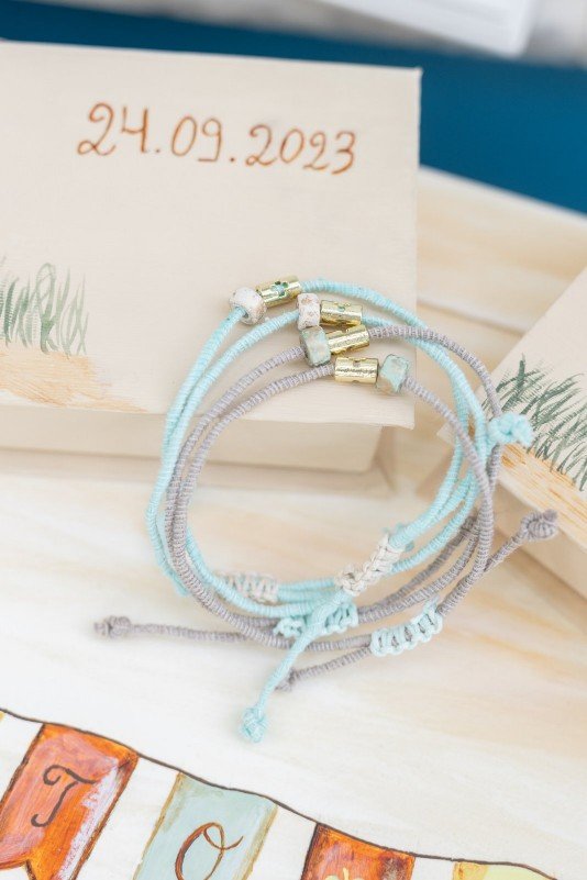 50 τεμάχια μαρτυρικά με σκοινάκι , χάντρα και σταυρουδάκι και ζωγραφισμένα κουτιά