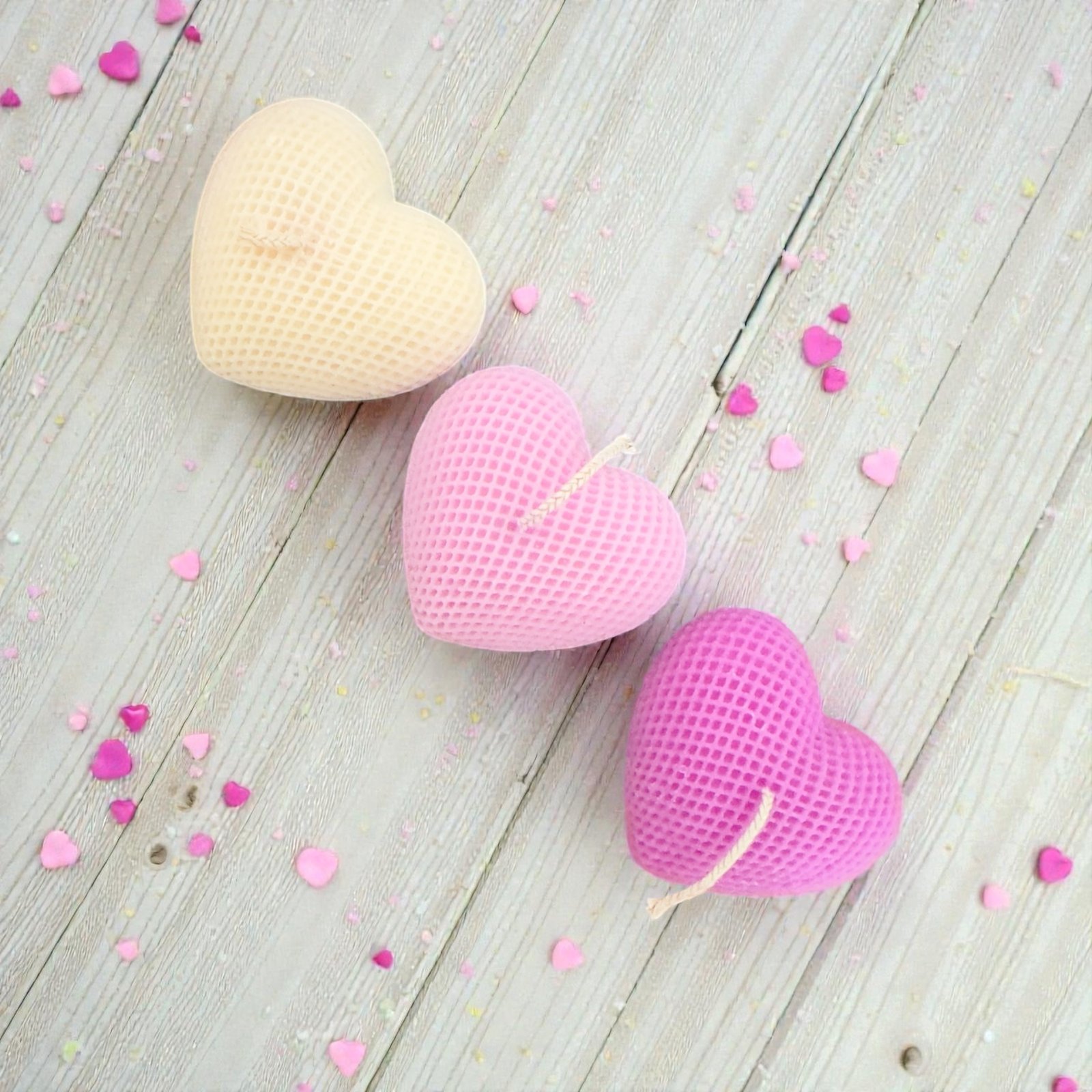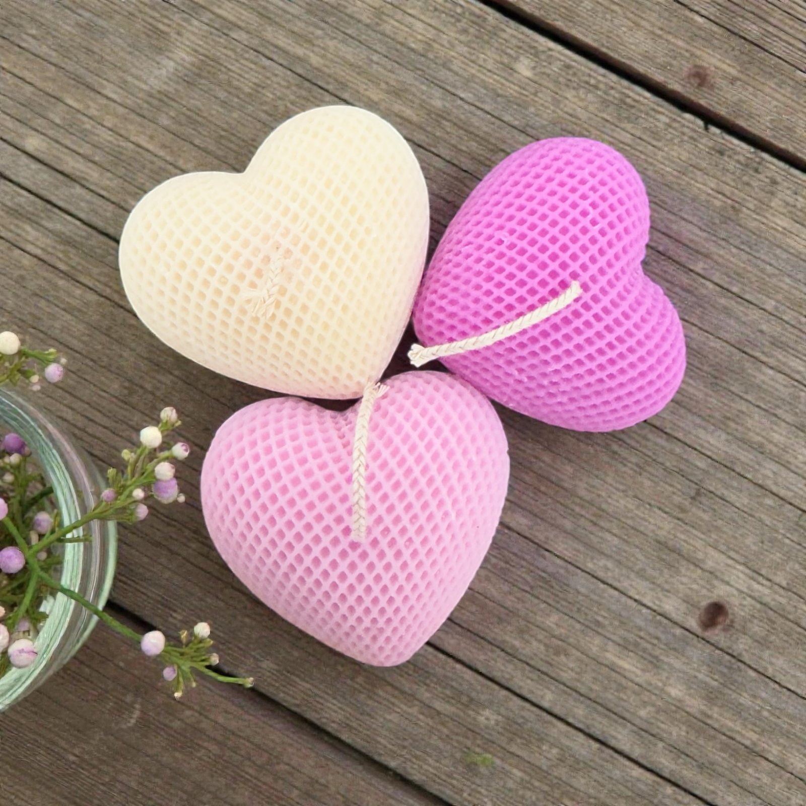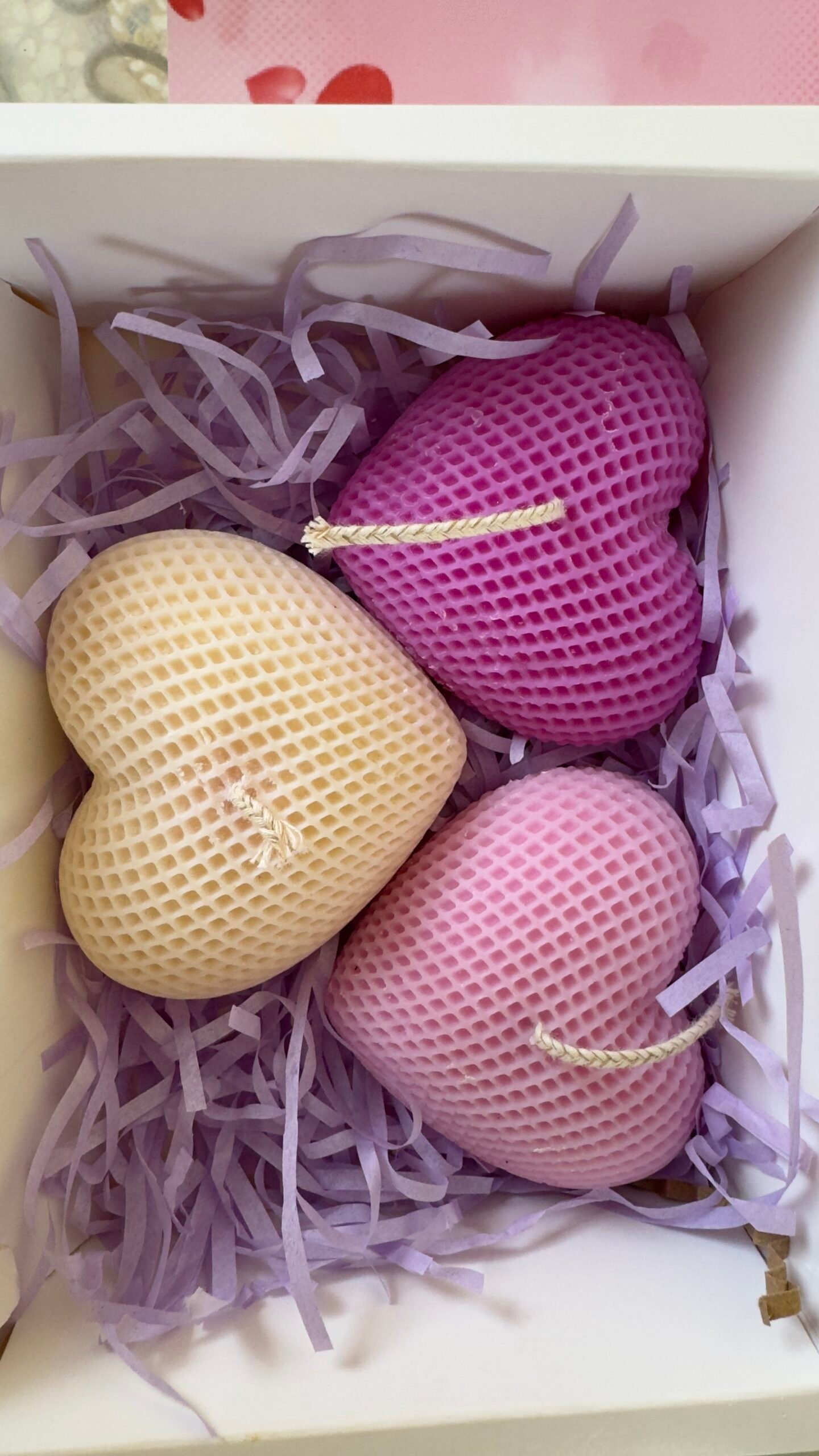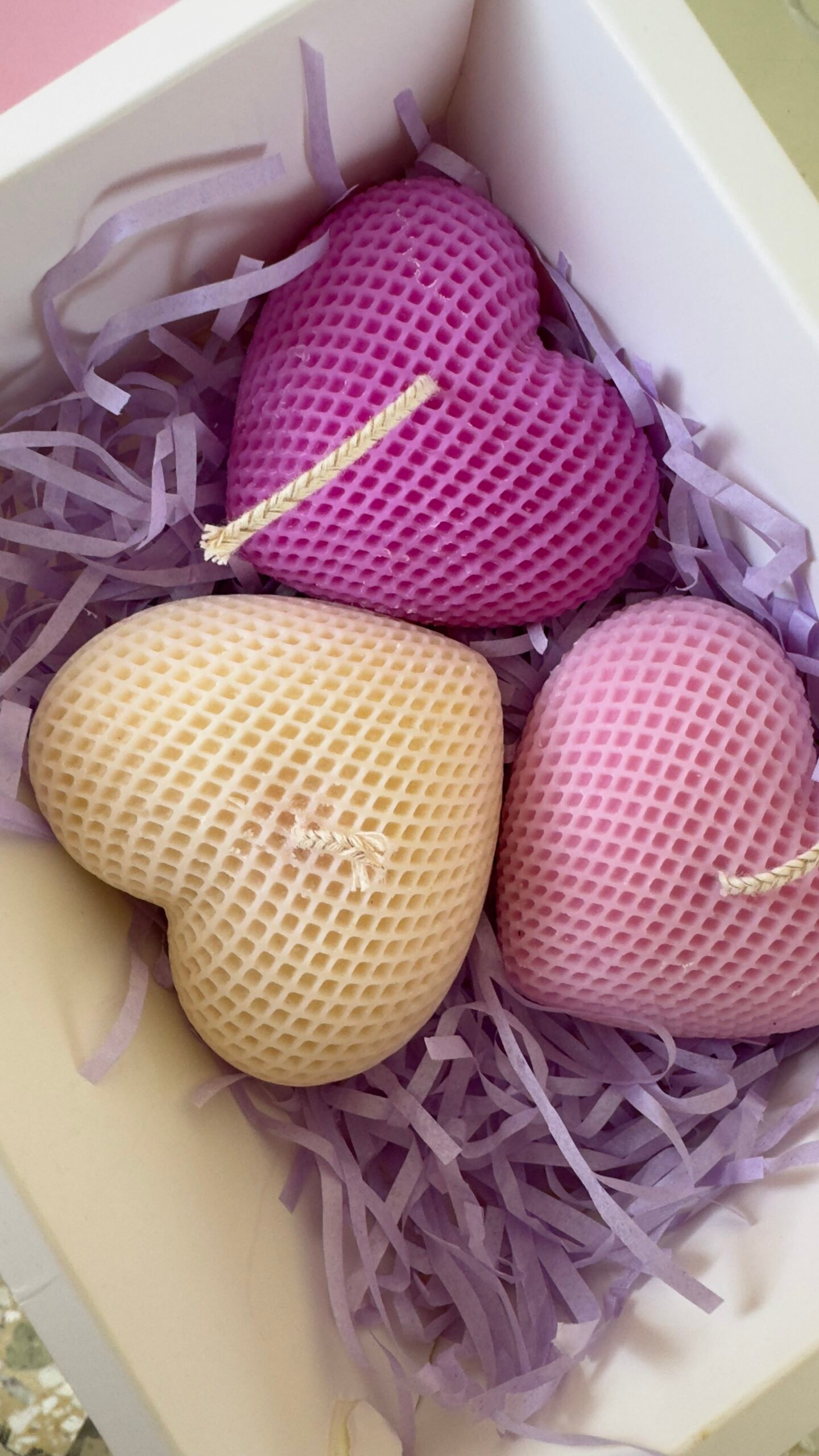 Τρεις καρδιές σε λευκό, λιλά και μωβ, καθεμία με ξεχωριστό άρωμα και συναίσθημα: