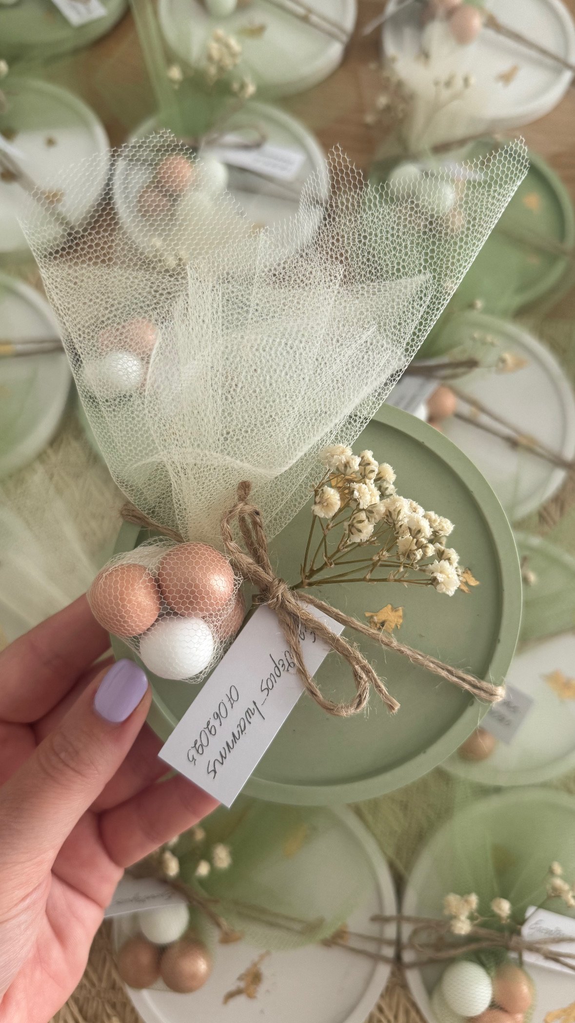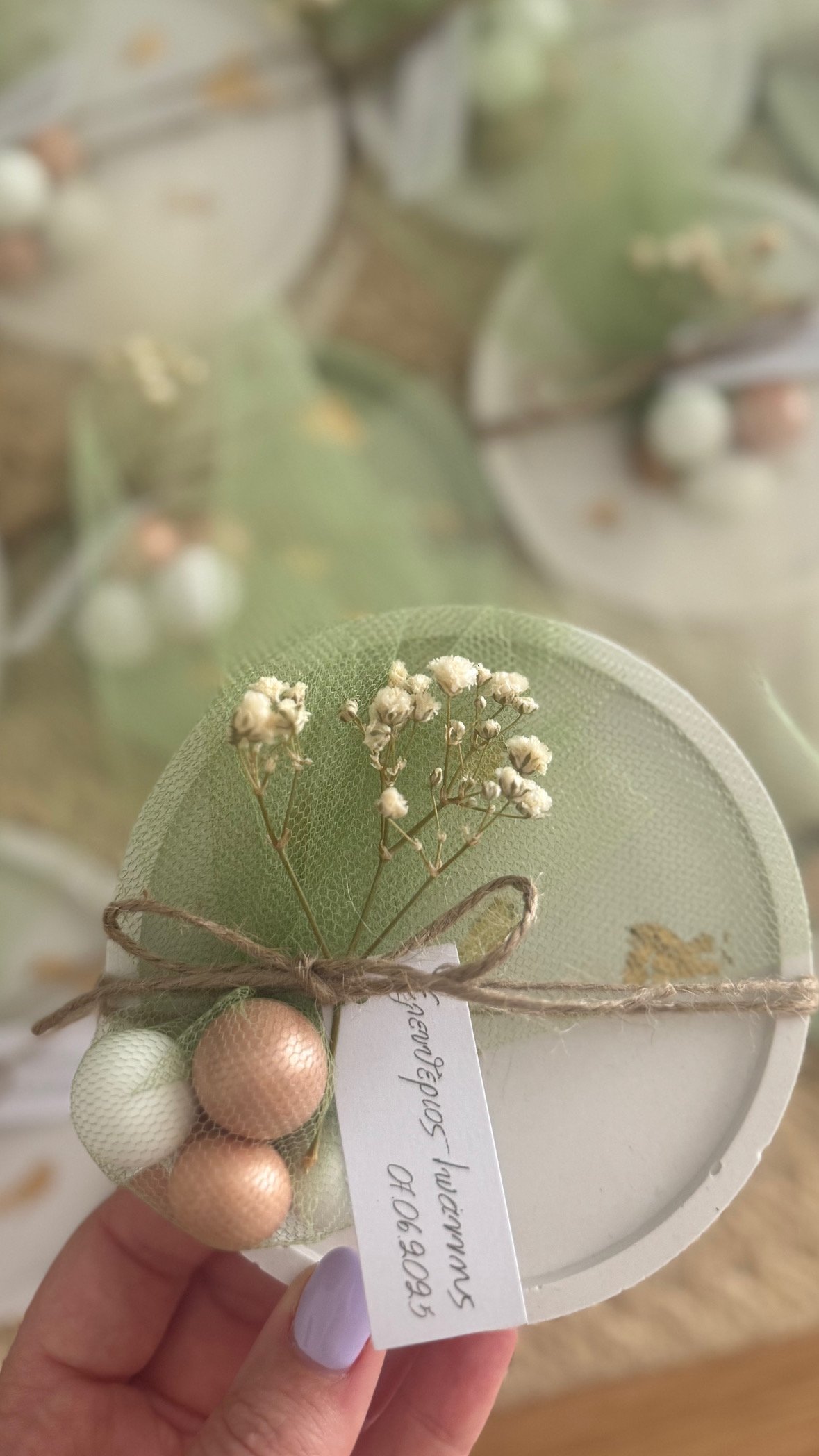 - Τούλι, κορδoνάκι και αποξηραμένο λουλούδι
