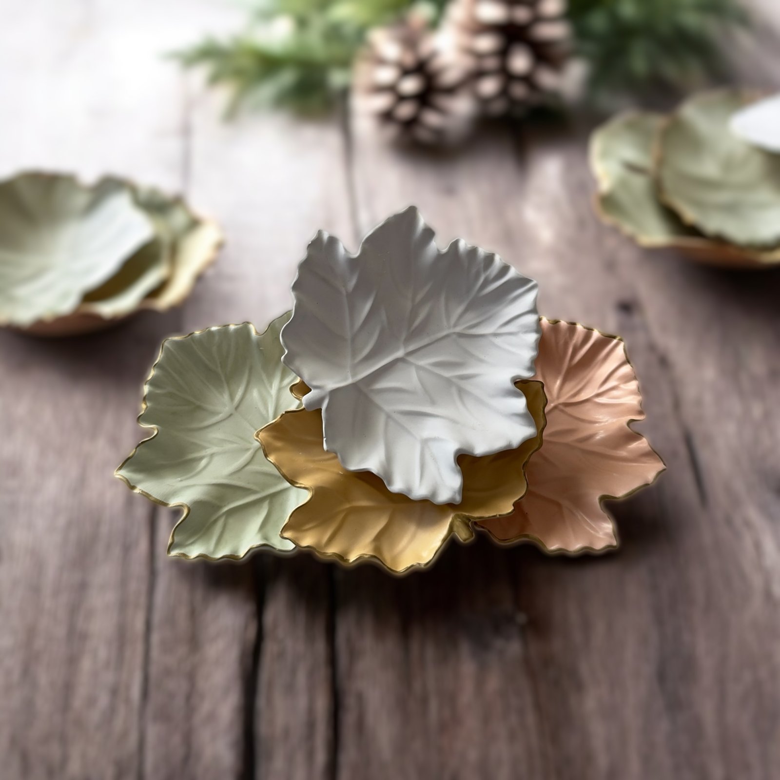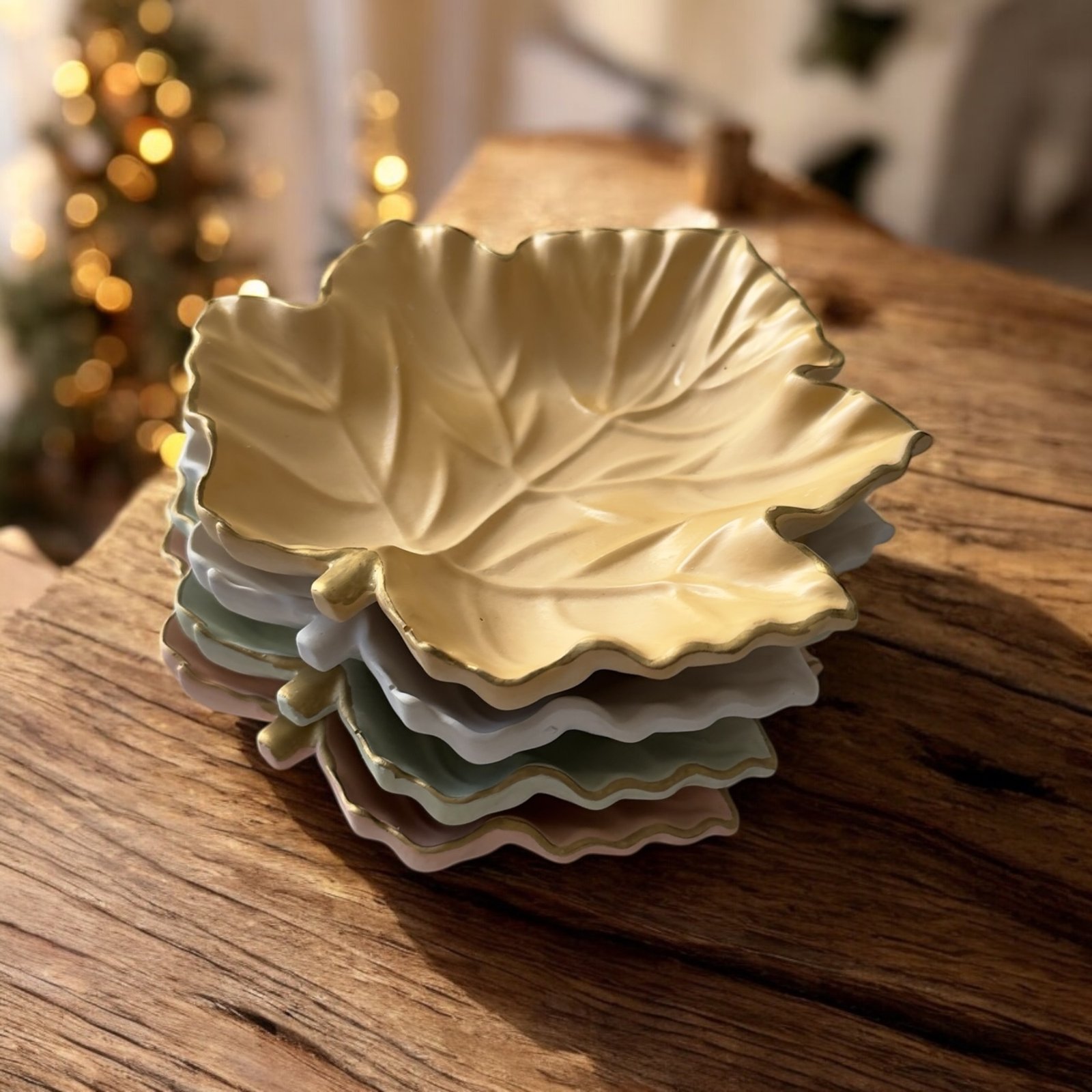 Χαρακτηριστικά: • Σχήμα: Φύλλο • Υλικό: Σκόνη πορσελάνης (οικολογικό & μη τοξικό) • Χρώματα: Χρυσό, Κόκκινο, Γκρι, Πράσινο • Χρήση: Διακοσμητικός / βοηθητικός δίσκος Ένα διακριτικό αλλά ξεχωριστό αντικείμενο που φέρνει τη φύση και την κομψότητα στον χώρο σας ![]()