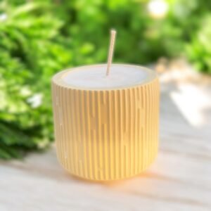 Minimal χειροποίητο κερί σε λείο μονοχρωμο δοχείο από σκόνη πορσελάνης, σχεδιασμένο για να ταιριάζει σε κάθε χώρο. Περιέχει 160γρ φυτικό κερί και διατίθεται σε διαφορετικές αρωματικές επιλογές