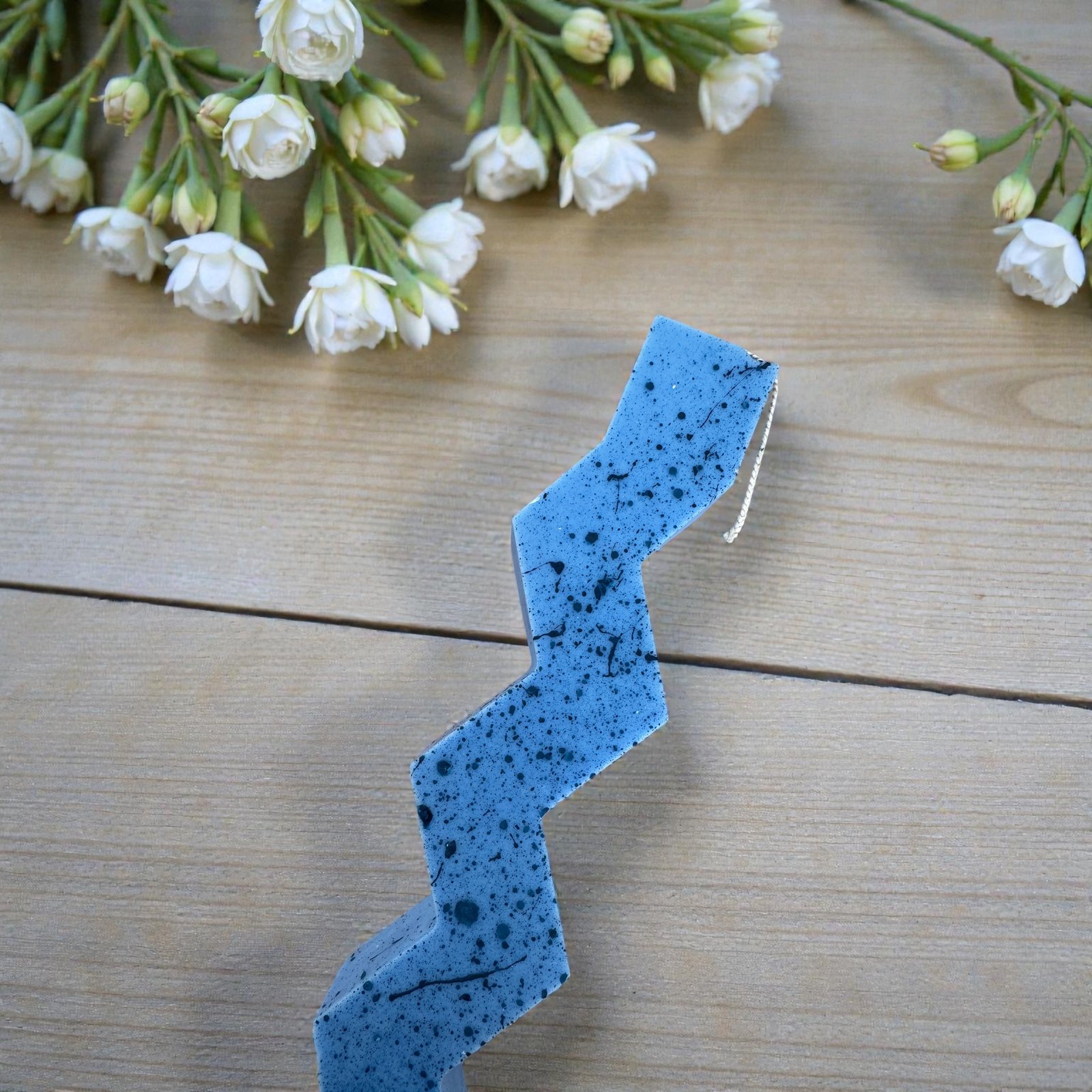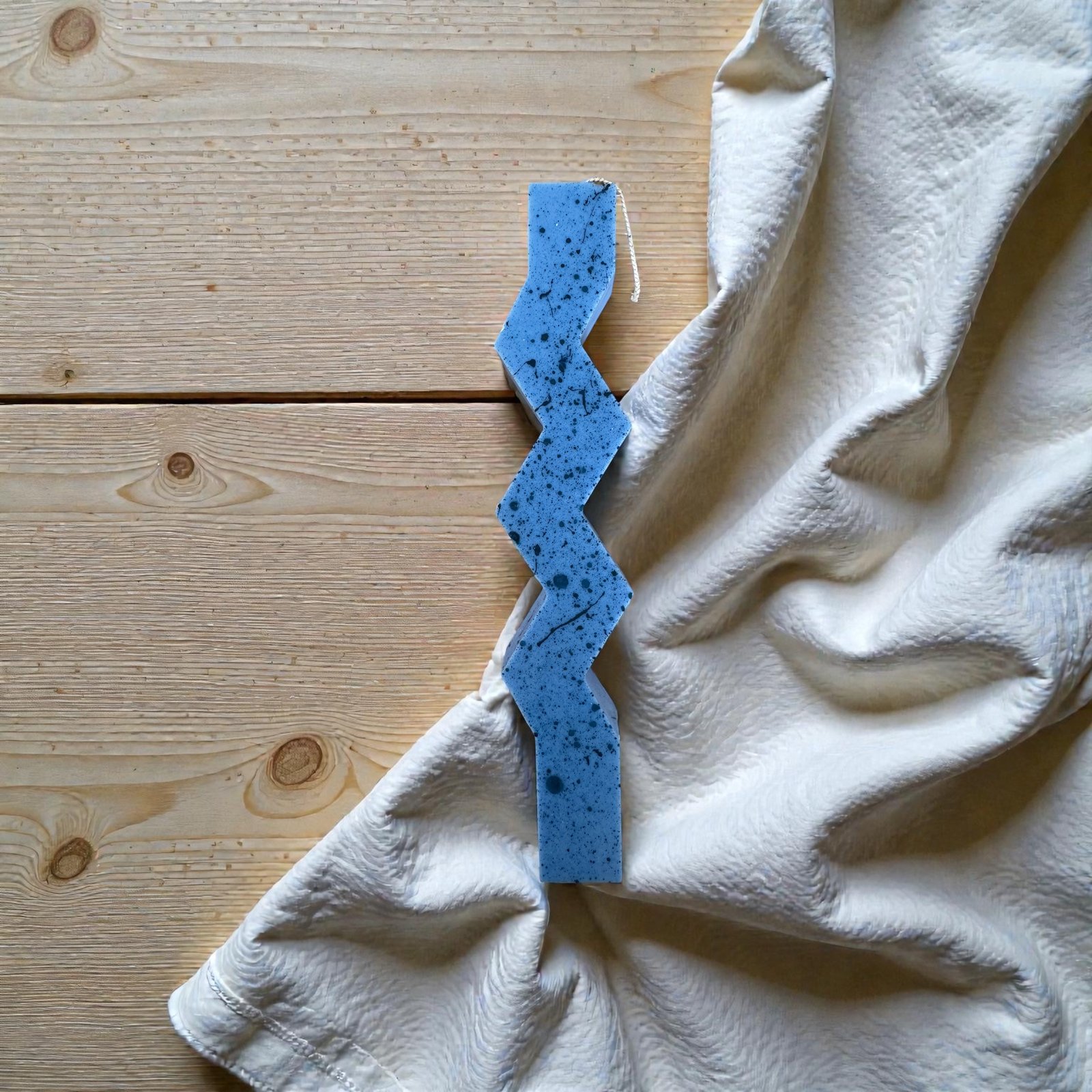 Μπλε λαμπάδα με καλλιτεχνικές πιτσιλιές και δροσερό άρωμα salty summer που θυμίζει θαλασσινή αύρα. Καθαρό, καλοκαιρινό και αναζωογονητικό. Από φυτικό κερί 120-130γρ, με δεύτερη χρήση ως wax melts.