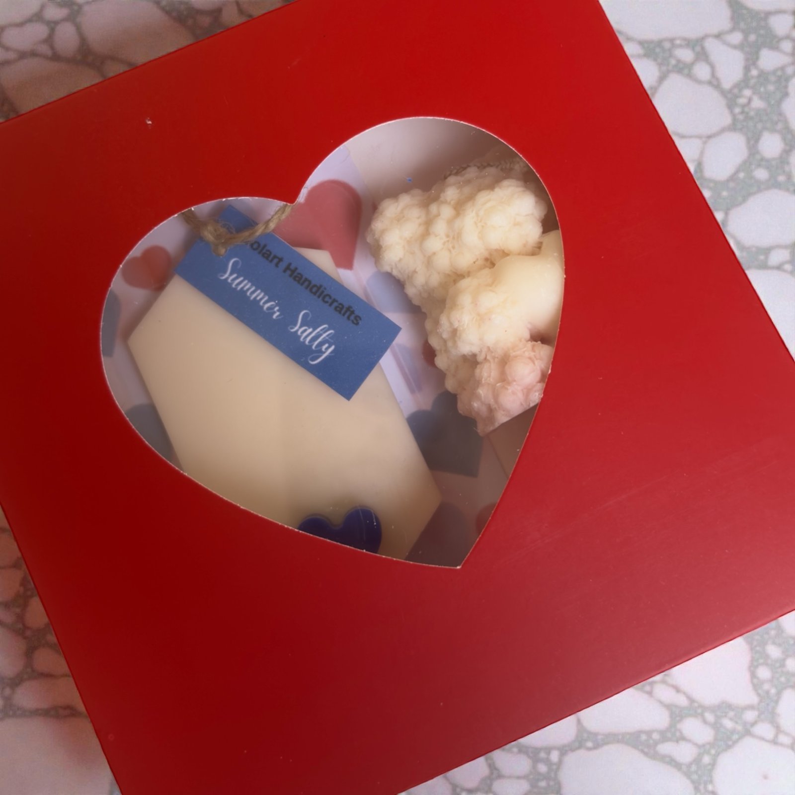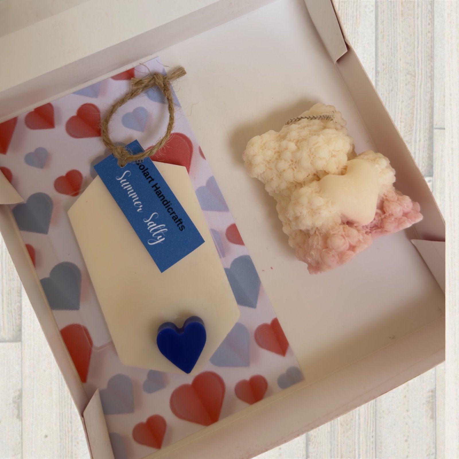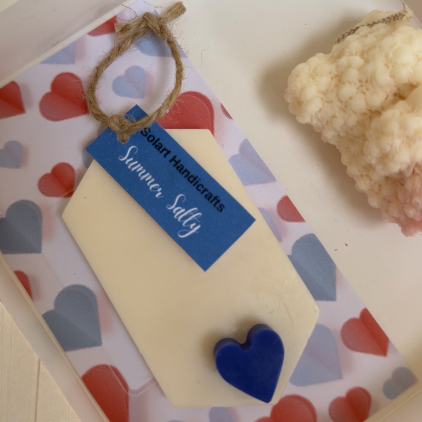 Η αρωματική ταμπλέτα ντουλάπας Summer Salty, διακοσμημένη με μπλε καρδιές, φέρνει θαλασσινή αύρα και αλμυρές νότες που θυμίζουν καλοκαίρι στο δέρμα.