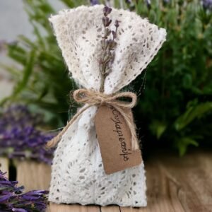 Μπομπονιέρα πουγκί δαντέλα με λεβάντα